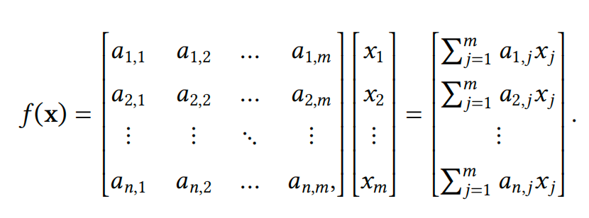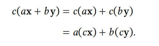 例 1. 对于任何标量 𝑐,缩放变换 𝑓 (𝐱) = 𝑐𝐱 是线性的