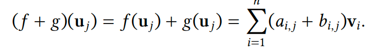 从数学上讲,如果 𝑓 , 𝑔 ∶ 𝑈 → 𝑉 是两个带矩阵的线性变换,𝑓 ↔︎ 𝐴 和 𝑔 ↔︎ 𝐵,那么