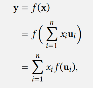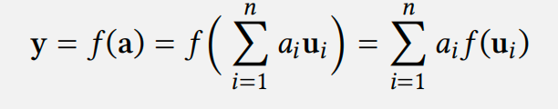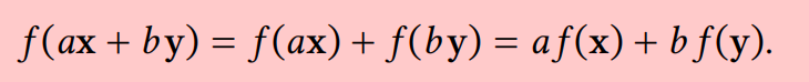 设 𝑈 和 𝑉 是两个向量空间(在同一个标量场上),𝑓 ∶ 𝑈 → 𝑉 是它们之间的函数。如果满足以下条件,则称 𝑓 是线性的