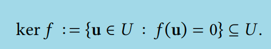 通常,我们将某个矩阵 𝐴 写为 im 𝐴 和 ker𝐴,指的是由 𝐱 ↦ 𝐴𝐱 定义的线性变换。