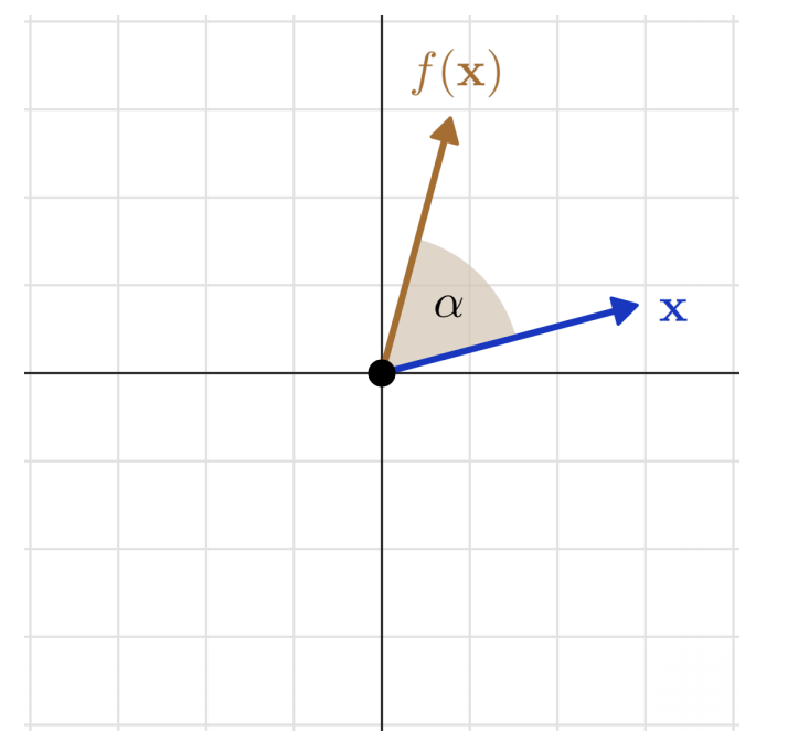 为了证明旋转确实是线性的,我们先直接看一个定义:平面向量\(𝐱 = (𝑥_1, 𝑥_2)\) 的旋转角为 𝛼,其表达式为