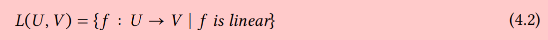 定理 4.1.1 设 𝑈 和 𝑉 是同一域 𝐹 上的两个向量空间。则所有线性变换的集合